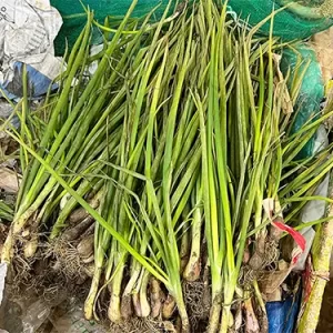 Garlic scapes are slightly thick dense long stems that grow out of the top of garlic. They are crisp, tender, and juicy. They have a mild garlic chive flavor.