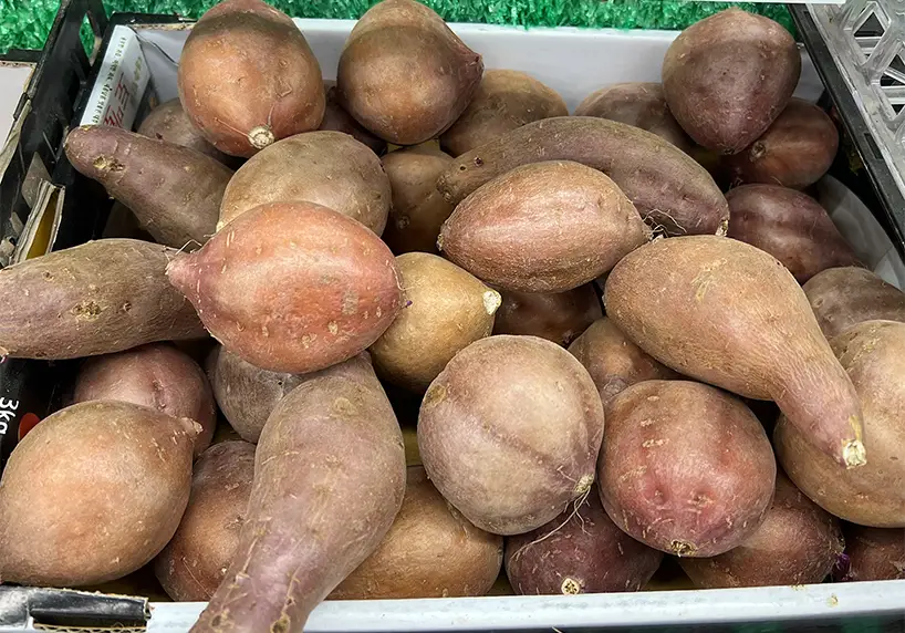 Pumpkin sweet potato has a yellow-orange inside and sweet and creamy flavor.