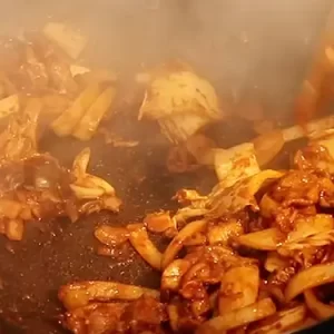 Some cuts of beef need to be sliced thinly before being used to stir fry. Beef bulgogi should be cut into 1/8in. thick pieces. Sometimes when beef is cut into very thin strips, they can clump together when added to the wok. So, it is important to mix your thinly sliced beef right after adding it to the wok.