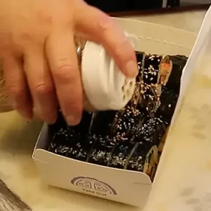 - Small Gimbap (마약김밥): This variety contains fewer ingredients and rice. You can see this small version often paired with tteokbokki.